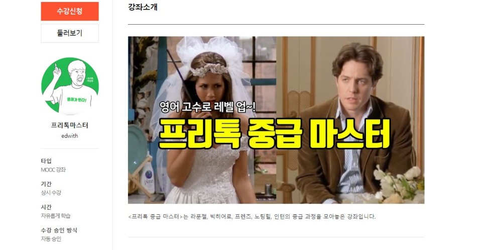여기저기 둘러보니 영어강의가 눈에 보이는데 프리톡마스터 이미지가